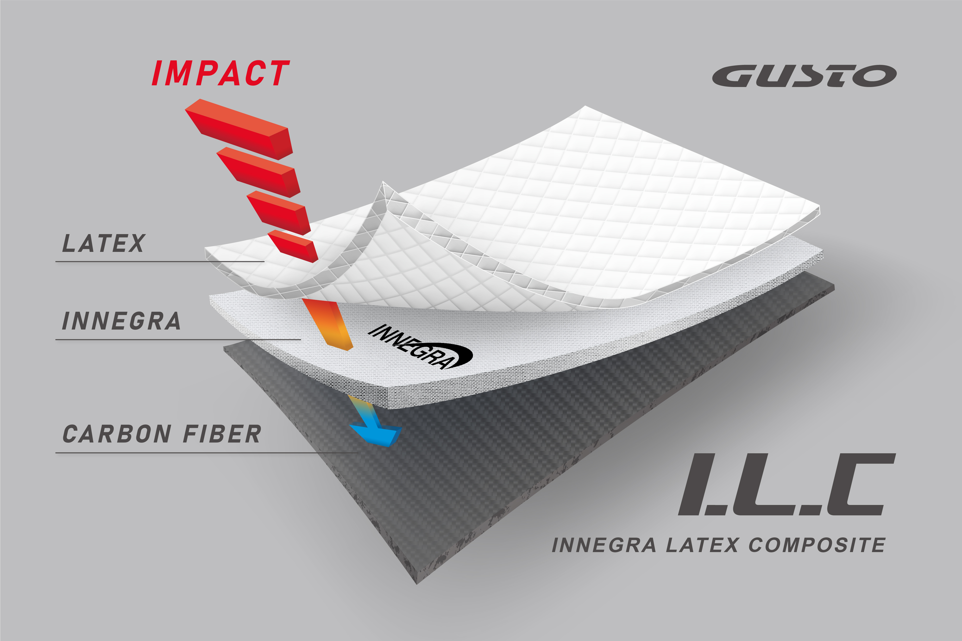 I.L.C. (Innegra Latex Composite) คือวัสดุไฮเทคจากสหรัฐฯ ที่เป็นไฟเบอร์สมรรถนะสูงน้ำหนักเบาที่สุดในโลก เมื่อนำมาผสานกับวัสดุ LATEX ที่จดสิทธิบัตร ช่วยมอบประสิทธิภาพการซับแรงสั่นสะเทือนที่ยอดเยี่ยม